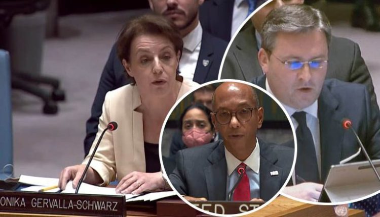 Pas raportimit të shefes së UNMIK-ut dhe diskutimeve të kryediplomatëve të Kosovës dhe Serbisë dhe përfaqësuesve të disa vendeve në KS të OKB, ka pasur një përplasje mes ministres së Jashtme Donika Gërvalla dhe kryediplomatit serb, Nikolla Selakoviq.