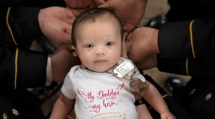 Christian Harris, një vajzë 2 muajshe ka dalë për të takuar disa njerëz shumë të veçantë, ushtarët që shërbyen krah babait të saj të ndjerë.
