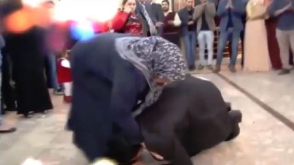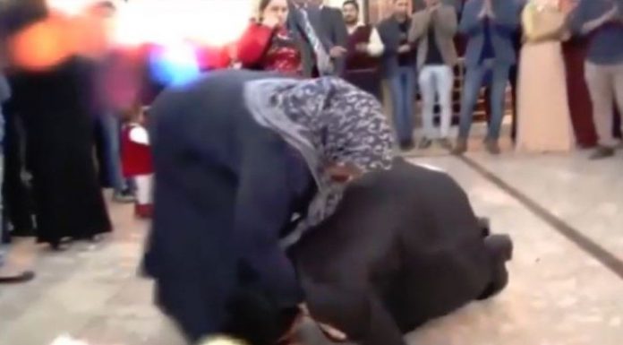 Aty shihet se si dhëndri e merr nënën e tij dhe fillon të vallëzoj