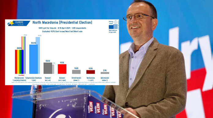 Për kandidaten e VMRO DPMNE Gordana Siljanovska Davkova do të votonin 20,4% e të anketuarve, ndërsa për konkurrentin e saj kryesor, presidentin aktual Stevo Pendarovski nga LSDM-ja, 16,8% e të anketuarve do të jepnin votën e tyre.