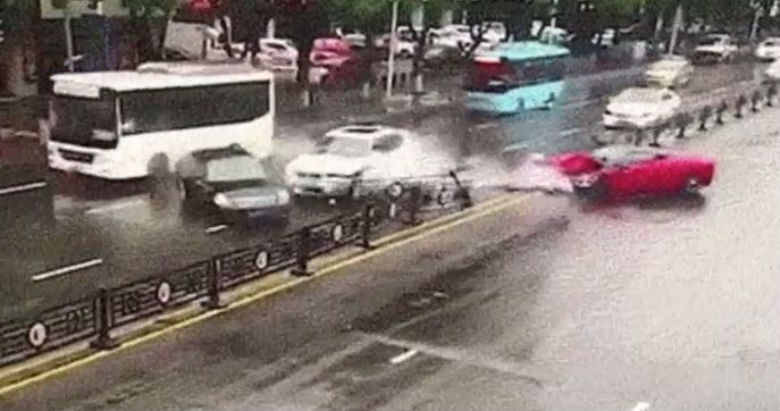 Por pak momente me pas gruaja ka humbur kontrollin e automjetit dhe e ka shkatërruar ate plotësisht. Imazhet e incidentit janë bërë nga një kamera vezhgimi në qytetin e Wenling, në Kinë.