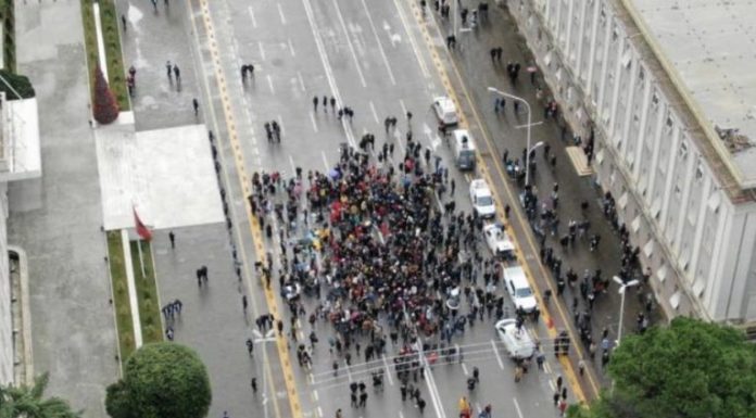 E megjithatë, protesta vijon. Edhe pse nën rreshje shiu, me dhjetra sosh qëndrojnë ende para kryeministrisë, madje duke patur mbështetje së fundi dhe protestues të “Astirit”. Çuditërisht, kësaj here këta të fundit nuk janë përzënë, siç ndodhi ditë më parë te Ministria e Arsimit. /tesheshi