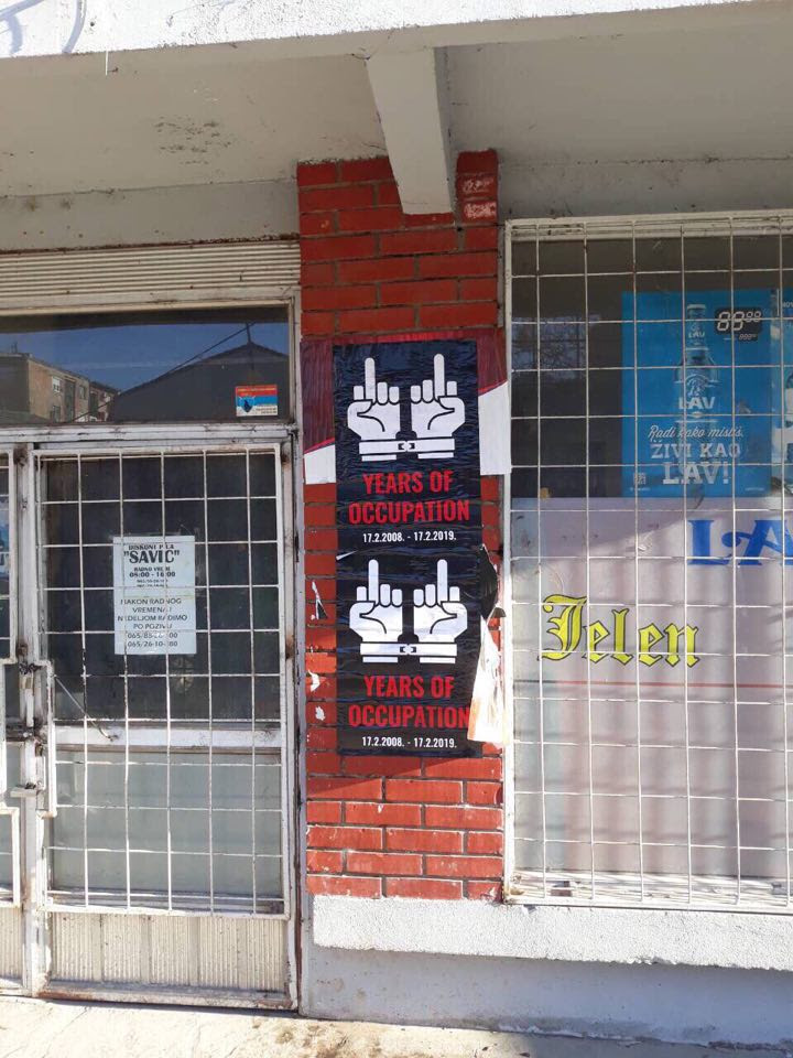 Më saktë, në këto pamflete vërehen gishtat e mesëm të të dy duarve si simbol i numrit 11, ndërsa shkruan “years of occupation”, që në përkthim do të thotë 11 vjet të okupimit.