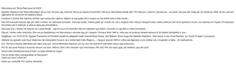 Ky palo gazetar, nga ata që u mungon njerëzorja në plot kuptimin e fjalës, e që mu për këtë arsye nuk duhet t’u jepet hapësirë publike, ka sulmuar jo vetëm hoxhën, por kryesisht hoxhën e njohur të Prizrenit, si dhe bashkësinë e besimtarëve muslimanë, duke u mveshur fyerje dhe etiketime të padenja, deri dhe duke bërë aludime në forma akuze ndaj hoxhës Mazllam Mallzami për lidhje të tij me ata që morrën rrugën drejt Sirisë.