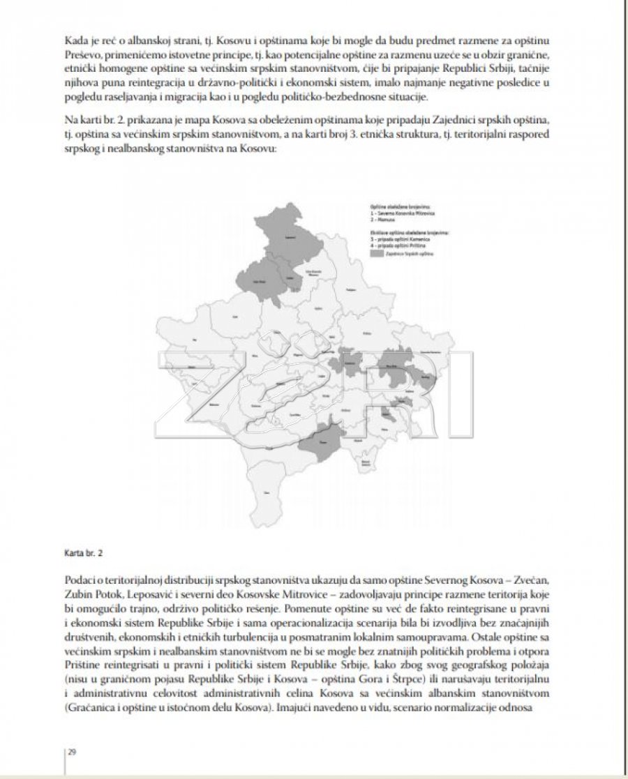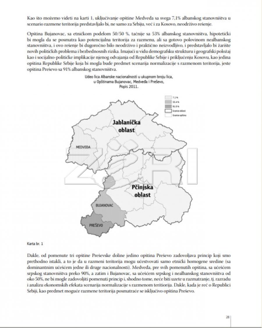 Gazeta “Zëri” ka arritur ta sigurojë një raport të hartuar nga gjashtë ekspertë serbë dhe të përkrahur nga Fondacioni për Shoqëri të Hapur në Beograd, në të cilin paraqiten skenarët për shkëmbim të territoreve mes Kosovës dhe Serbisë.