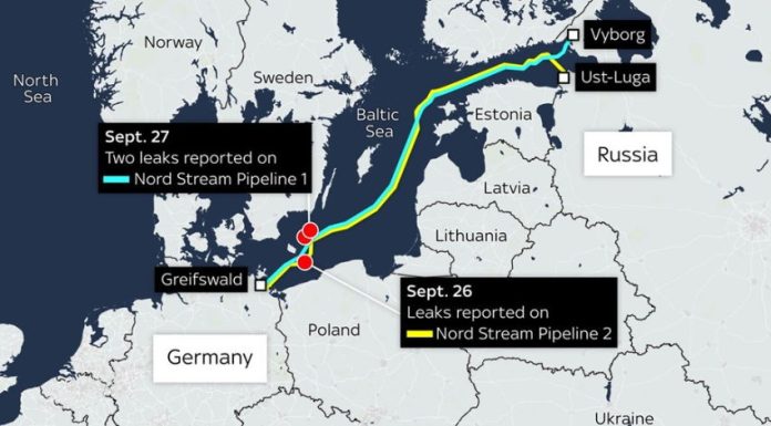 BE-ja më parë deklaroi se tre rrjedhje në dy tubacione gazi Rusi-Gjermani ishin punë sabotimi dhe dyshimi ka rënë mbi Rusinë.