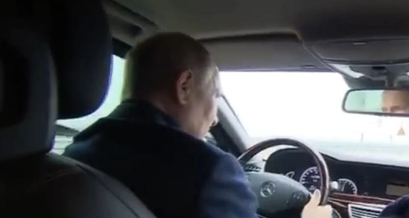 Lideri rus duke dashur të tregojë se gjithçka është nën kontroll – ura është një qendër për rifurnizimin e ushtrisë ruse – voziti një Mercedes ndërsa fliste me punëtorët e përfshirë në riparime. Kujtojmë që më 8 Tetor, një bombë shpërtheu në urën që lidh Krimenë me Rusinë dhe dyshohet se për këtë janë përgjegjës shërbimet sekrete ukrainase.