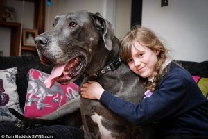 Ky qen ndoshta është qeni më i madh i Britanisë. Edhe pse i madh dhe “i frikshëm” ai është një mik ideal për tre fëmijët dhe pronarët. Ai peshon 100 kg pra sa i vogli i një elefanti dhe është i gjatë (213 cm) në gjatësi nga hunda në bishtin e tij.