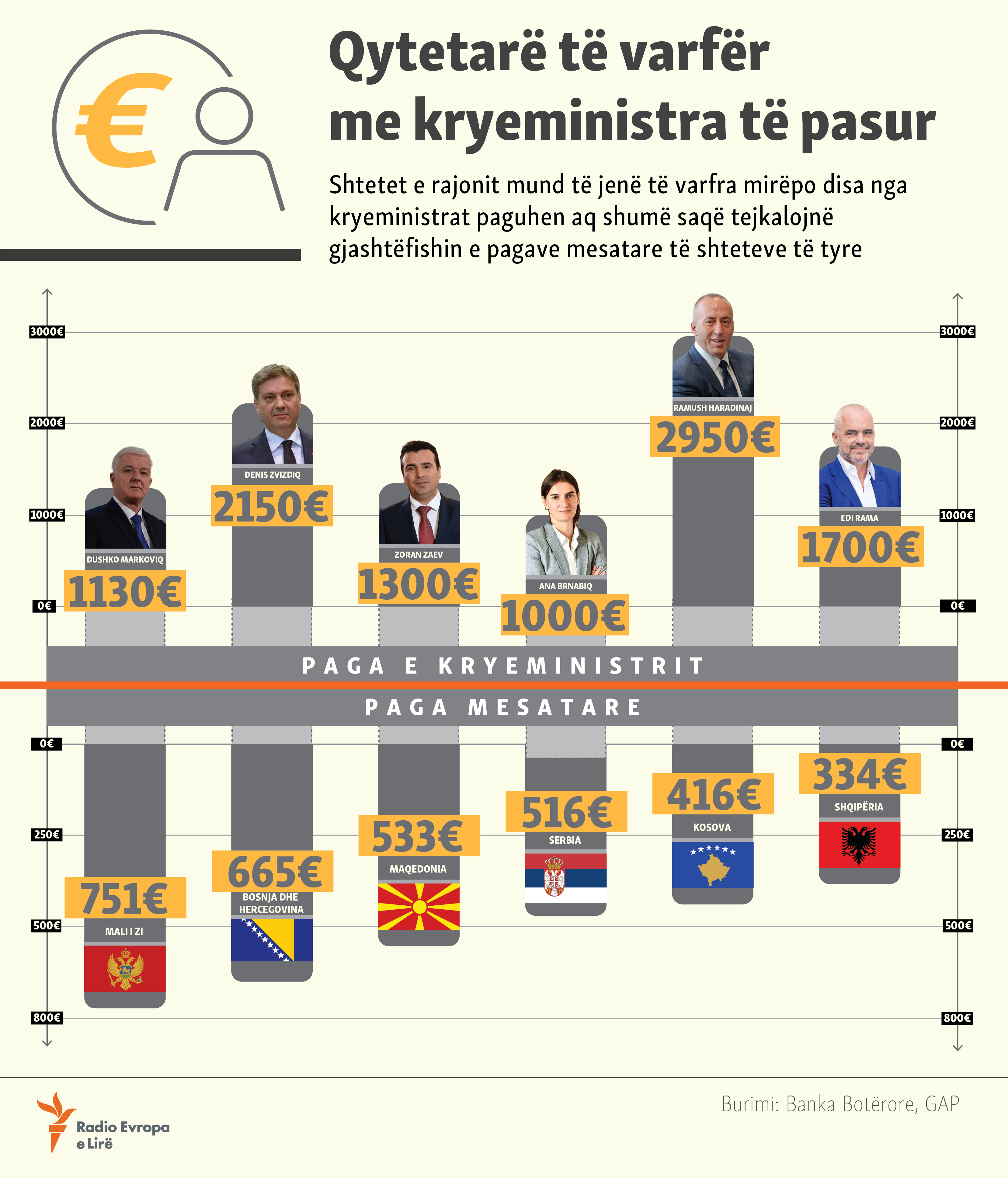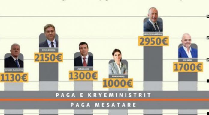 Në shtetet e rajonit pagën më të lartë e ka kryeministri i Kosovës, Ramush Haradinaj, prej 2950 eurosh. Në Kosovë e cila radhitet e parafundit në shtetet e rajonit për nga paga mesatare.