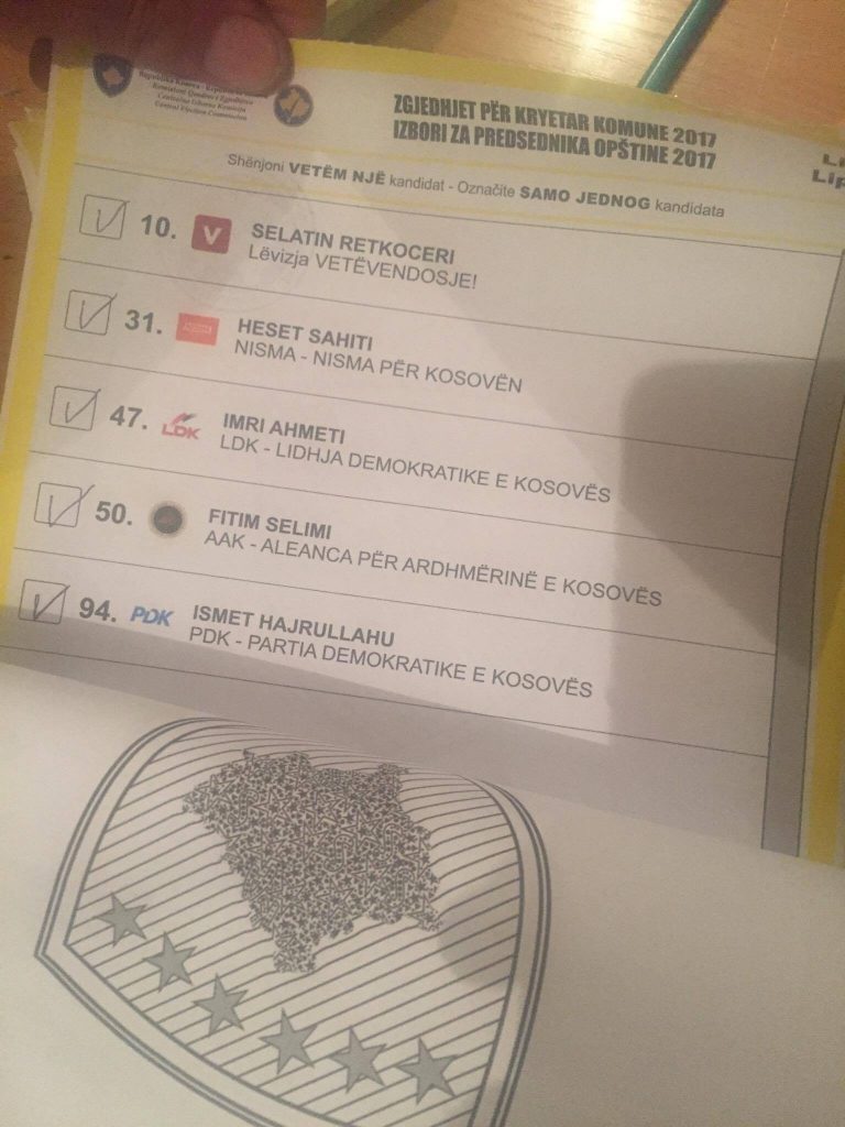 Një qytetar tjetër e ka shënuar vetëm një pikëpyetje në fletëvotim, e njëri i ka votuar dy kandidatë, të LDK-së dhe AAK-së, e një tjetër të pesë kandidatët.