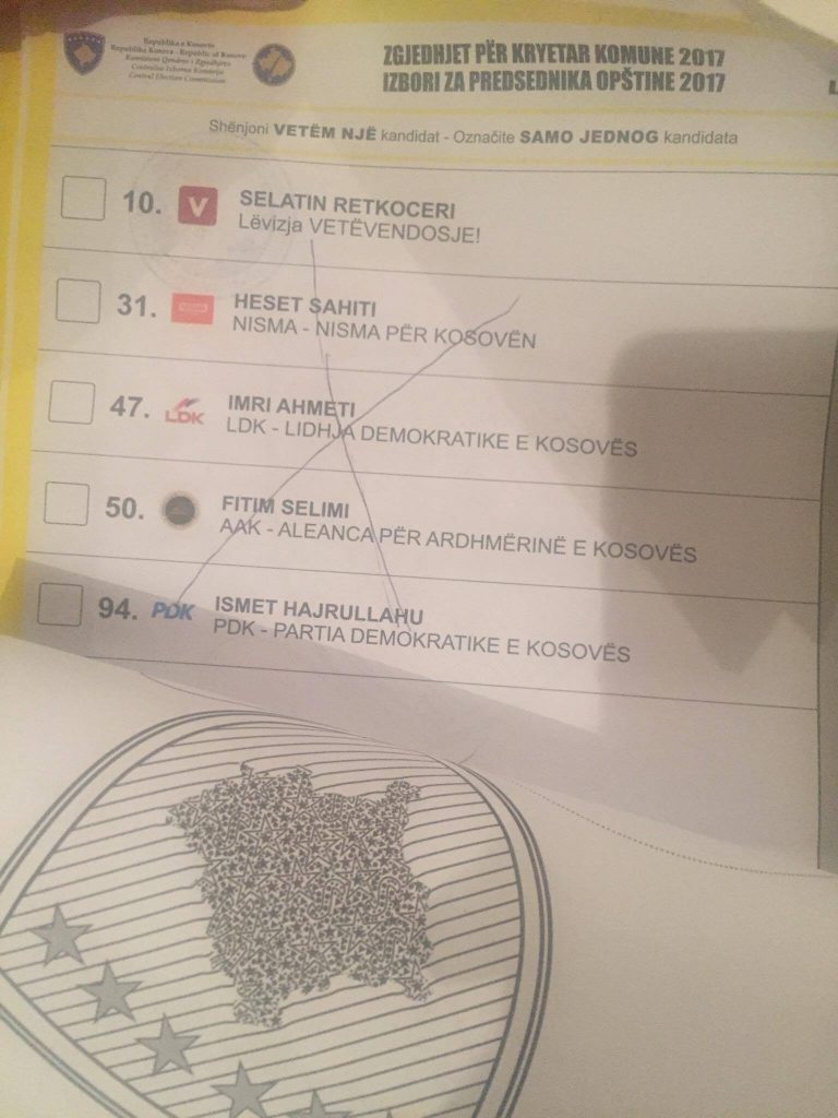 Ndërsa, një votues tjetër ka votuar për kandidatin e LDK-së dhe atë të PDK-së, e një tjetër e ka bërë një X të madh në fletëvotim.