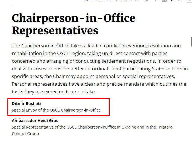Pavarësisht se në strukturën e OSBE-së nuk ka një post të të ‘dërguarit të posaçëm’, kjo është detyra që Rama i ka dhënë ish- Ministrit të Jashtëm. Bushati do të jetë zëri i Shqipërisë në ditët kur Rama nuk do të jetë prezent në krye të presidencës së Shqipërisë në OSBE.