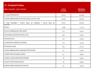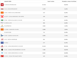Sipas të dhënave të KQZ’së, tash kur janë numëruar mbi 90% të votave në Prishtinë, del se Lëvizja Vetëvendosje ka marrë 24.156 vota për Asamble, ose 32.81%. Kurse LDK ka marrë 21.012 vota ose 28.54%.