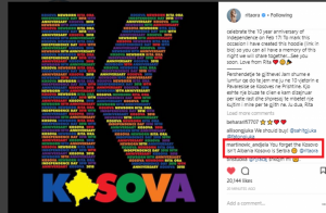 “Pershendetje te gjitheve! Jam shume e lumtur qe do te jem me ju ne 10 vjetorin e Pavaresise se Kosoves ne Prishtine”, ka shkruar këngëtarja në llogarinë e saj në Instagram.