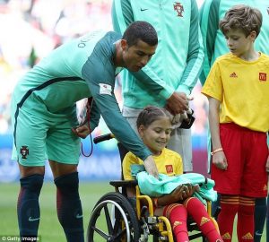 Kapiteni portugez kishte hyrë në fushë në Spartak Stadium në Moskë duke mbajtur për dore vajzën me aftësi të kufizuara.
