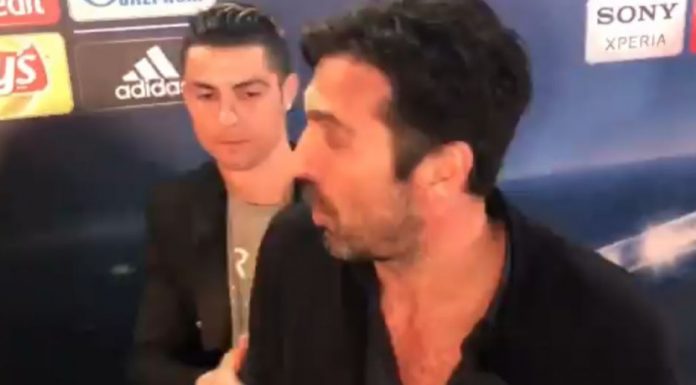 Por gjatë intervistës Cristiano Ronaldo e ndërpreu Gianluigi Buffonin për ta përshëndetur.