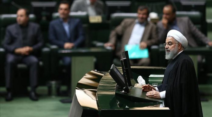 Rouhani ka propozuar në Parlament mocionin e besimit për katër ministrat, përkatësisht ata të Ekonomisë dhe Financave, Punës, Transportit dhe Urbanizmit dhe Ministrisë së Industrisë, Minierave dhe Tregtisë, me ç’rast edhe mbajti një fjalim ku foli për sanksionet e SHBA-ve.