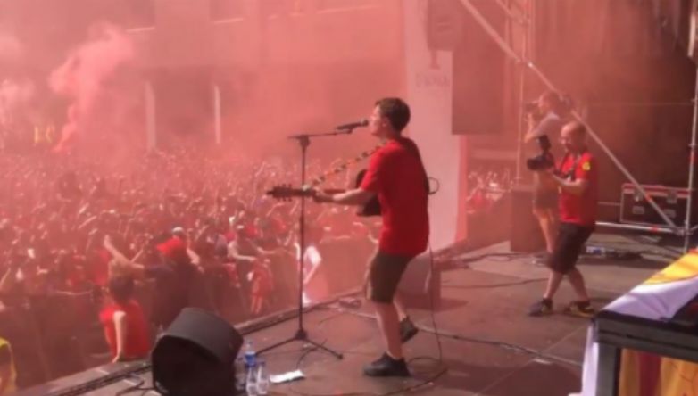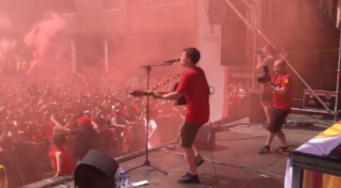 Përveç himnit të skuadrës “YNWA” dhe këngët për futbollistët e skuadrës tifozët janë argëtuar edhe me këngën e Dua Lipës dhe Calvin Harrisit “One Kiss”