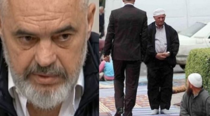Ish- kryeministri Sali Berisha ka përcjellë në rrjetin social një foto të kryeministrit në Tiranë (foto e disa viteve më parë), teksa Rama shkel me këpucë sexhdet-et e muslimanëve të mbledhur në qendër të Tiranës për ritualet fetare.