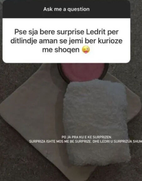 Kujtojmë që pak ditë më parë Ledri tregoi në “Më lër të flas” se nuk i pëlqen të organizojë diçka për ditëlindje, por i pëlqejnë festat surprizë. Kjo ka bërë që ndjekësit të pyesin Sarën.