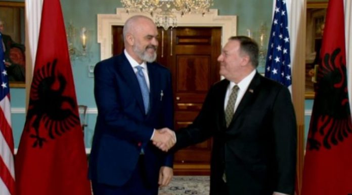 Sekretari amerikan i Shtetit Michael R. Pompeo priti të mërkurën në Departamentin e Shtetit Kryeministrin e Shqipërisë Edi Rama.