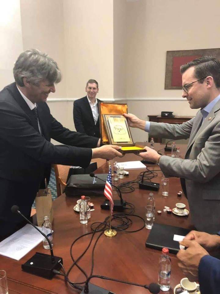 “Sot pata kënaqësinë të pres në takim delegacionin amerikan, të përbërë nga Republikanë dhe Demokratë, si dhe ekspert të fushave të ndryshme, veçanërisht të Gjyqësisë, të cilët vizituan vendin tonë dhe shfaqën interes për të dëgjuar këndvështrimin e Aleancës për shqiptarët në lidhje me procesin integrues të vendit, ndërtimin e shtetit ligjor, platformën politike dhe çështje të tjera aktuale.”