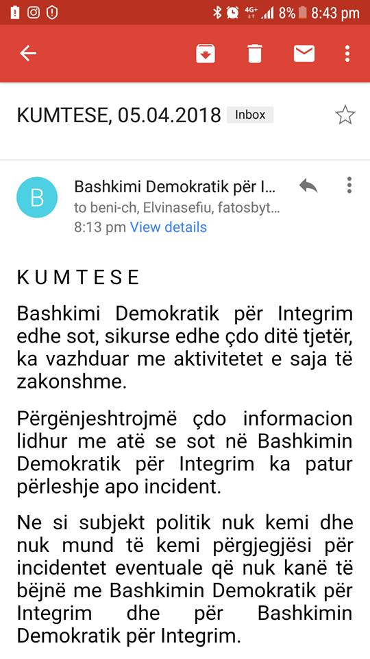 Gazetari Naser Selmani ka reaguar ndaj kumtesës me të cilën BDI u distancua nga incidenti me armë zjarri në Tetovë.