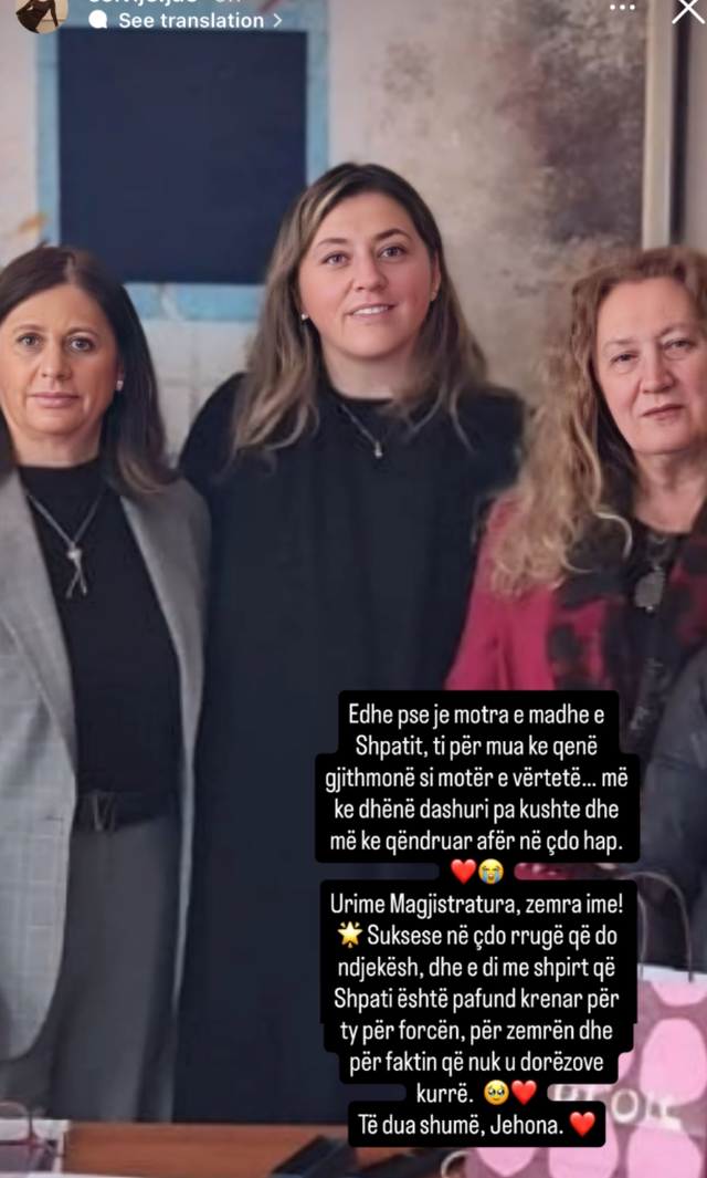 Urime magjistratura zemra ime! Shpati është pafund krenar për ty, për forcën, për zemrën dhe për faktin që nuk u dorëzove kurrë. Të dua shumë, Jehonë.”