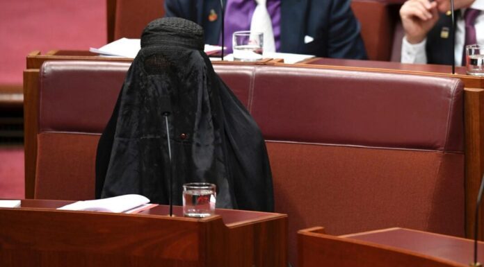 Senatorja australiane e ekstremit të djathtë, Pauline Hanson, është paraqitur në parlament e veshur me hixhab, në një përpjekje për të shtyrë përpara iniciativën e saj për ndalimin e veshjeve myslimane në hapësira publike.
