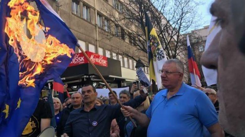 Sheshel pastaj ka djegur flamuj të NATO -s e të Bashkimit Evropian.