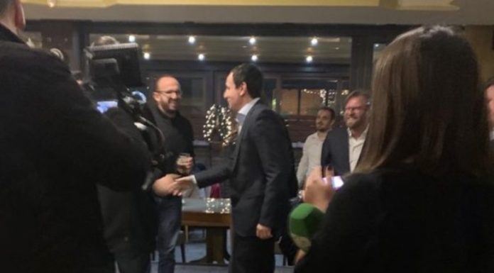 Kreu i Lëvizjes Vetëvendosje, Albin Kurti, është duke marrë pjesë në ndejën e fundvitit që partia e tij e ka organizuar në një prej restoranteve në Prishtinë.