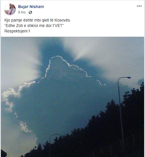 Sipas ish-presidentit, kjo pamje është mbi qiellin e Kosovës, dhe, sipas tij, kjo gjë është “shkrim me dorë të Zotit”, andaj ai ka kërkuar të respektohet.