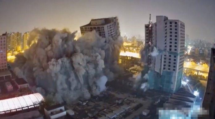 Katër ndërtesa 20-vjeçare të ndërtuara pjesërisht në qendër të qytetit të Shangait janë shembur njëkohësisht, duke shkaktuar një tërmet me magnitudë 1.7. Kjo zonë do të shndërrohet në një kompleks urbanistik në të ardhmen.
