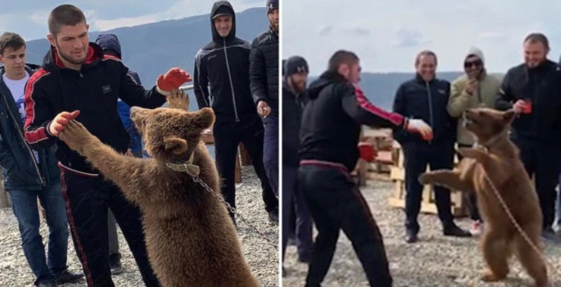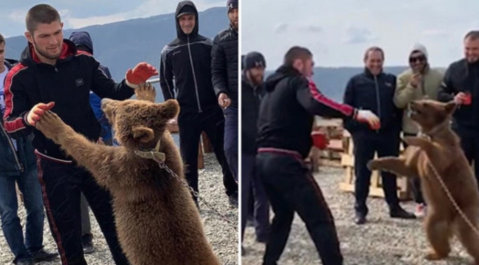 Kampioni i UFC’së, Khabib ka publikuar një foto me ariun në “Instagram” dhe krahas saj ka shkruar “Me shokun tim të vjetër”.