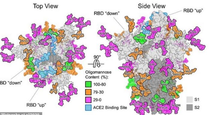 Këto thumba janë të veshura në sheqerna, të njohura si glikane, të cilat maskojnë proteinat e tyre virale dhe i ndihmojnë ata të shmangin sistemin imunitar të trupit.
