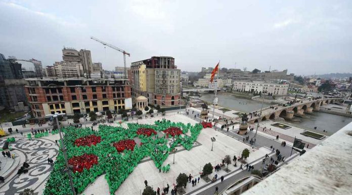 Në prag të festave të fundvitit, Shkupi ka synuar të bëhet pjesë e rekordeve Guinnes duke krijuar pemën më të madhe të Vitit të Ri me njerëz.