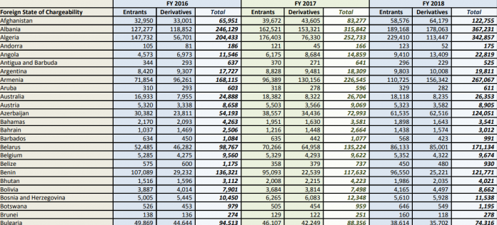 Departamenti i Shtetit i publikon statistikat e aplikimeve një herë në tre vjet dhe Shqipëria rezulton një nga vendet me më shumë aspirantë për emigrim në SHBA nëse merren parasysh edhe përmasat e popullsisë.