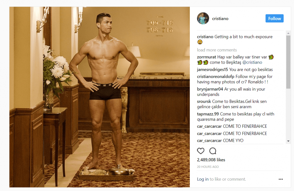 Blogu britanik, HopperHQ ka paraqitur listen e figurave të njohura publike të cilet fitojnë me se shumti para për çdo postim në Instagram, ku në mesin e tyre është edhe ylli Madrilen, Cristiano Ronaldon duke u renditur si i 3-ti dhe i cili për çdo postim të tij në Instagram fiton 400.000 mije euro.