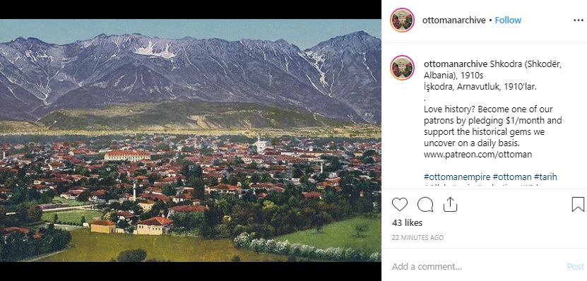 Një pikturë e qytetit të Shkodrës, e cila daton në vitin 1910 është publikuar nga faqja e njohur “Ottoman Archive”.