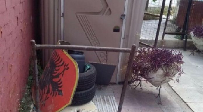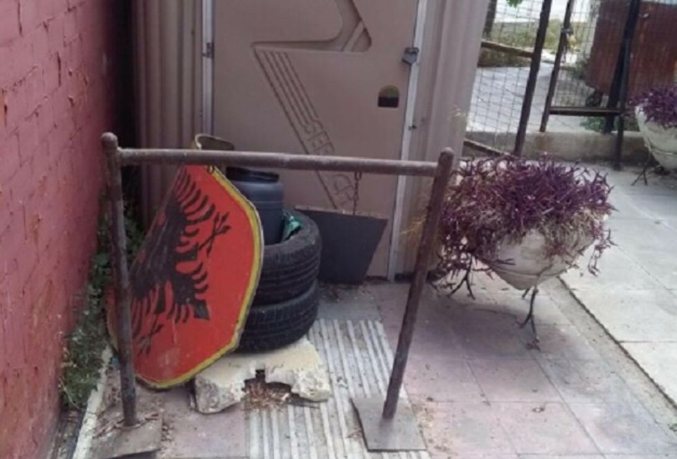 Nuk dihet se si ka përfunduar ky simbol shqiptar para derës së një WC-je në kryeqytetin grek Athinë, mirëpo sidoqoftë bëhet fjalë për pamje të pahijshme.