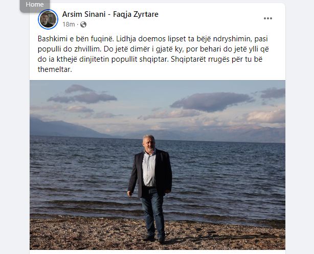 “Bashkimi e bën fuqinë. Lidhja doemos lipset ta bëjë ndryshimin, pasi populli do zhvillim. Do jetë dimër i gjatë ky, por behari do jetë ylli që do ia kthejë dinjitetin popullit shqiptar. Shqiptarët rrugës për tu bë themeltar”, ka shkruar Arsim Sinani.