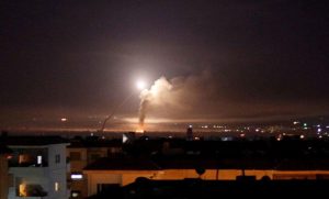 Dëshmitarë të pranishëm në një panair tregtie në kryeqytetin Damask thanë se kishin parë flakë të shndritshme në qiellin e errësuar nga nata, që ngjanin me fishekzjarre.