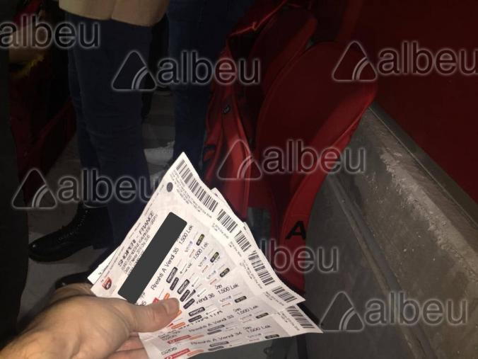 Ai ka sjellë me fotografi biletat që ka blerë për ndeshjen të cilat ishin në rreshtin A dhe në vendet 33, 34, 35, 36, 37, 38 dhe 39.