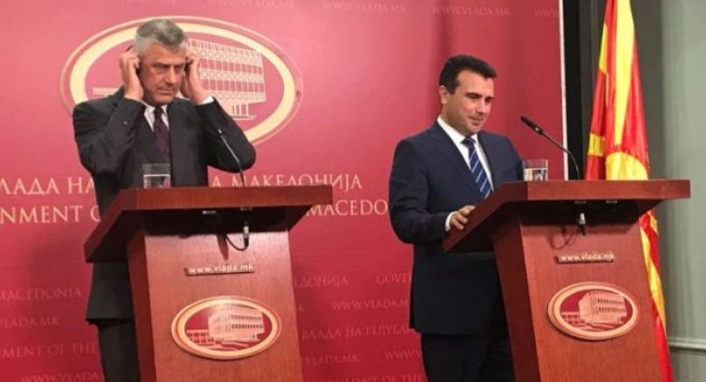Presidenti i Kosovës, Hashim Thaçi sot po qëndron për vizitë pune në Maqedoni, me ç’rast do të realizojë takim me kryeministrin Zoran Zaev. Shërbimi qeveritar për shtyp informoi se Zaev dhe Thaçi do të kenë një takim kokë-më-kokë, pas çka do të pasojë edhe një takim bilateral i delegacioneve të të dy vendeve. Pas përfundimit të takimit, do të pasojnë deklarata për media të presidentit të Kosovës dhe kryeministrit të Maqedonisë.