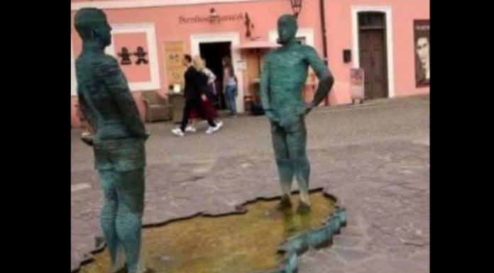 Në mes të Republikës Çeke është vendosur ky objekt poshtërues, ku harta e Shqipërisë “urinohet” nga dy “gurë”.