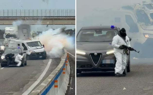 Banditët përdorën eksplozivë për të shkatërruar automjetin e blinduar, i cili krijoi një re tymi. Më pas ata ikën në zonën e Squinzanos në provincën e Leçes. Ata mbanin veshur tuta të zeza dhe të bardha dhe të armatosur me pushkë. Pamjet video të regjistruara nga shoferë që kalonin tregojnë të paktën gjashtë persona që vepronin me fytyrat e mbuluara. Grabitja nuk u krye. Për t’u arratisur, kriminelët dyshohet se grabitën disa shoferë që kalonin. Banda dyshohet se përdori makina me drita që ndizen, duke i maskuar ato si automjete civile në shërbim të policisë. Autostrada shtetërore u mbyll në të dyja drejtimet nga km 8,300 deri në km 12,800 në San Pietro Vernotico (Brindisi). Ekipet e Anas dhe forcat e rendit janë në vendngjarje për të menaxhuar trafikun, sipas Anas, dhe për të rivendosur rrjedhën normale të trafikut sa më shpejt të jetë e mundur.
