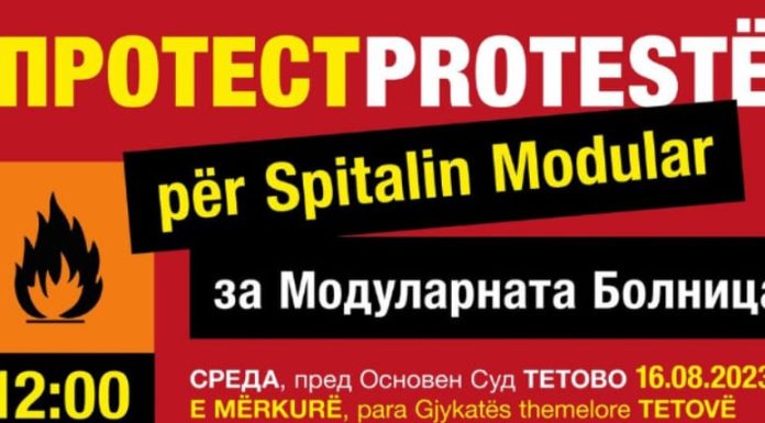 Sot në Tetovë do të mbahet protestë për drejtësi dhe zbardhjen e përgjegjësisë për zjarrin në spitalin modular në Tetovë që mori 14 jetë më 8 shtator të 2021.
