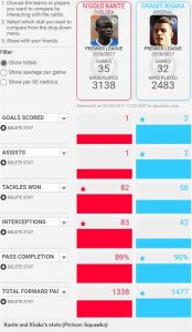 Ky i fundit vetëm në ndërprerjen e aksioneve dhe fitimin e dyluftimeve me kundërshtarët është më i mirë se mesfushori shqiptar ndërsa në katër statistikat kryesore tjera, Granit është më i mirë se lojtari i Chelseat.