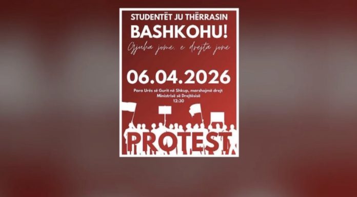 Studentët shqiptar të universiteteve në Maqedoninë e Veriut, sot duke filluar nga ora 12:30, do të protestojnë, ndërsa kërkojnë që provimi i jurisprudencës të mbahet edhe në gjuhën shqipe.