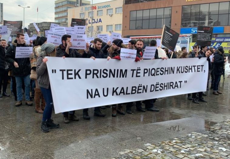 Sot nga qendra e Tetovës filloi protesta e studentëve në Tetovë. Me me moton “Tek prisnim të piqeshin kushtet, na u kalbën dëshirat”, qindra studentë filluan protestën.